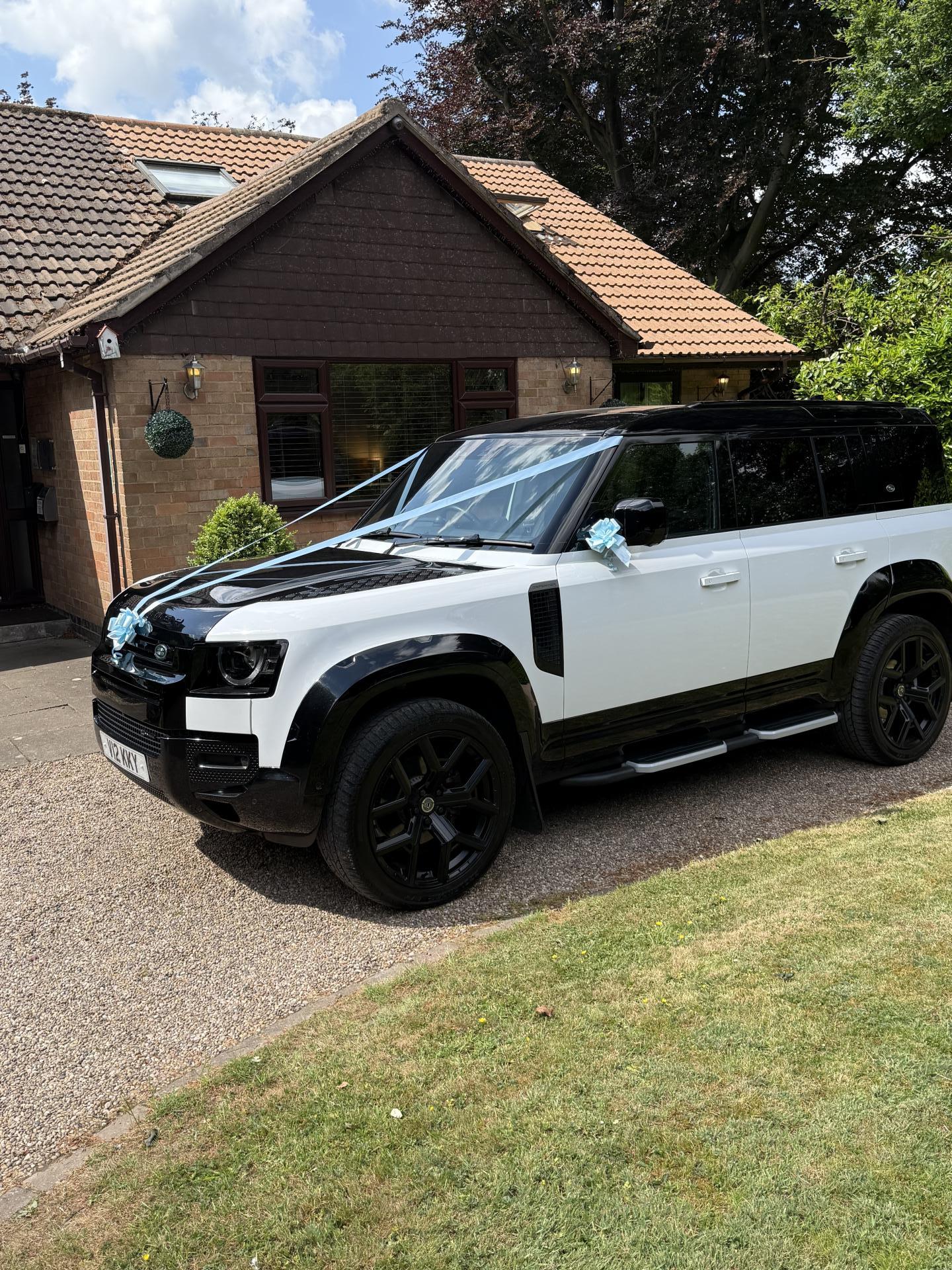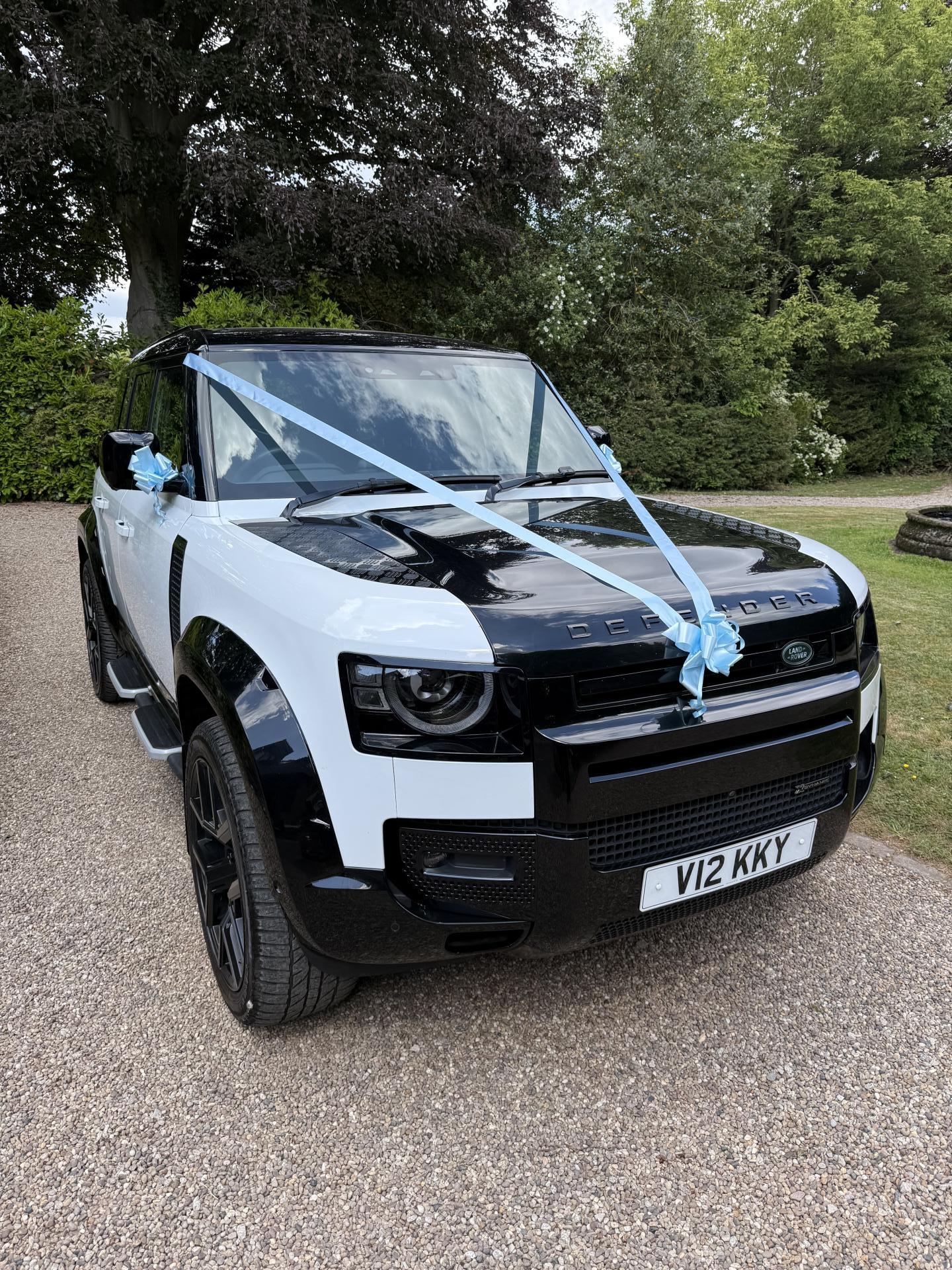 To complete the whole experience, we now offer a new Landrover Defender 110 in white & Black with ribbon colours of your choice to take you to the venue. Prices start from £60 one way, please enquire for further pricing and information.